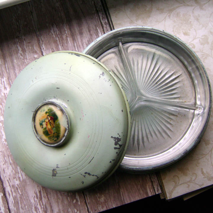 A divided serving dish that I used for storing jewelry making supplies in my studio.